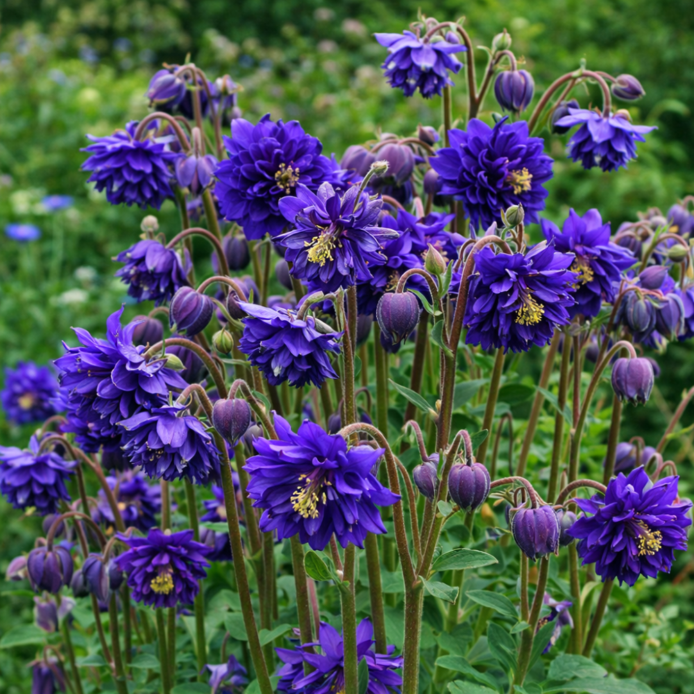 Aquilegia vulgaris Blue Barlow este o plantă perenă decorativă cu flori duble spectaculoase de culoare violet-albastru intens. Florile sunt fără pinteni, au formă rotunjită și apar pe tulpini erecte, oferind plantei un aspect elegant și ordonat. Planta atinge aproximativ 80 cm înălțime și este potrivită pentru straturile medii și înalte ale grădinii, precum și pentru accente decorative.