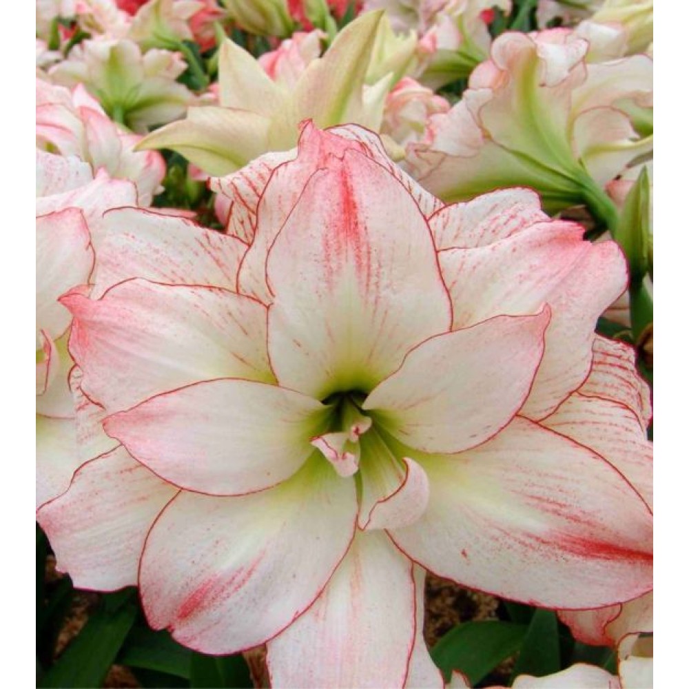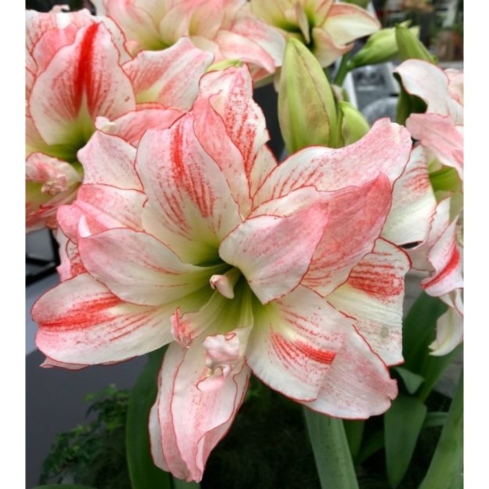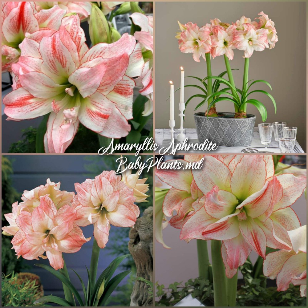 Amaryllis "Aphrodite" este o plantă elegantă și frumoasă, care impresionează prin florile sale mari, de culoare roz delicat cu nuanțe albe și roșii în centru. Florile au formă de stea și sunt extrem de atractive datorită petalelor lor numeroase, care formează inflorescențe bogate. Acest soi de amaryllis este perfect pentru decorarea casei, aducând un aer de confort și armonie. "Aphrodite" este ideal pentru a crea aranjamente de interior stilate sau pentru a fi oferit ca cadou special.