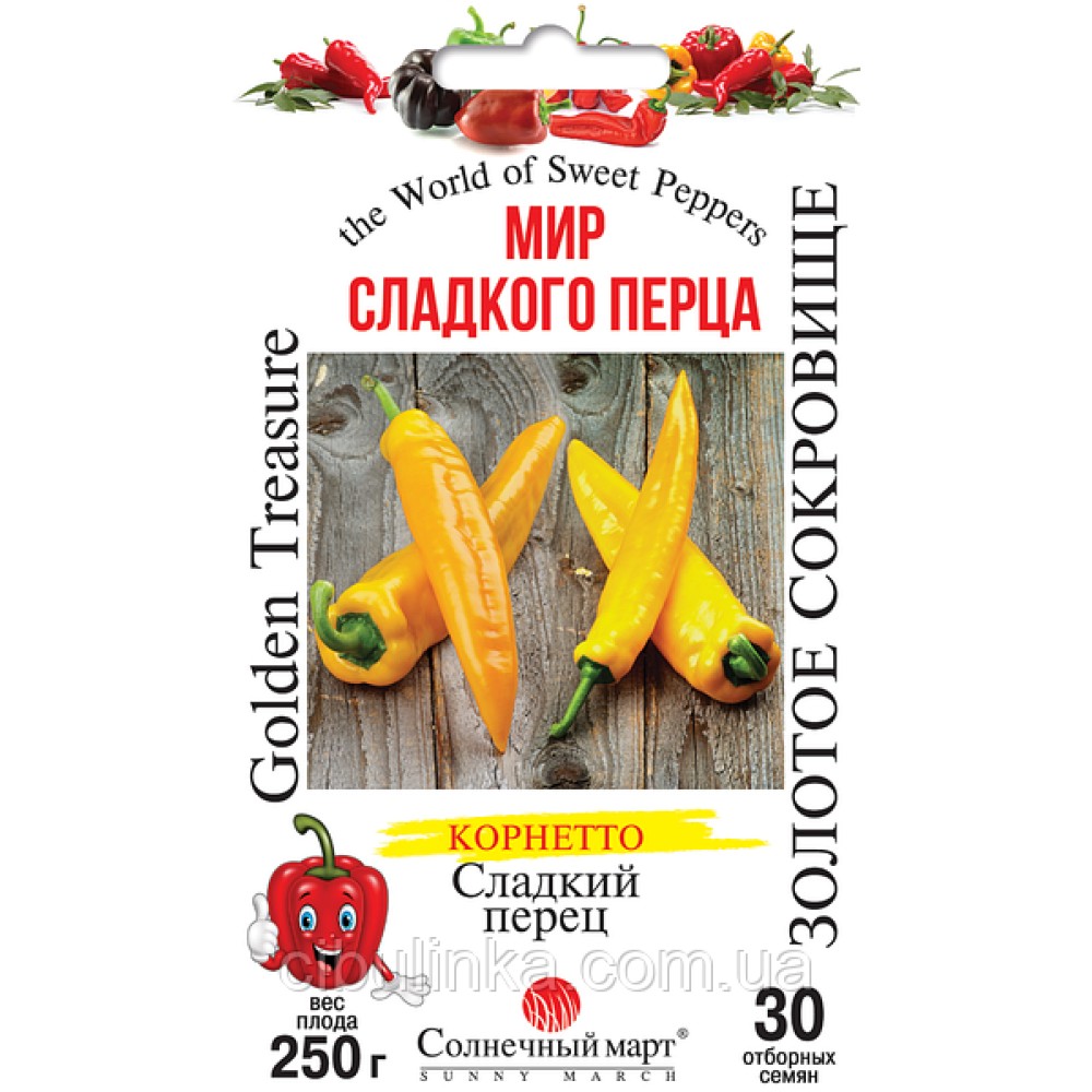 Очень вкусный старинный итальянский сорт. Этот перец невероятно сладкий, вырастает длиной около 8 дюймов (20 см) и шириной 2 дюйма (5 см), весом около 260 г, его фаршируют или используют как перец для жарки, особенно в виде чипсов. Вкусен в сыром виде. По мере созревания (70-80 дней от пересадки) меняют цвет от зеленого до золотисто-желтого, и затем, великолепного золотисто-оранжевого.