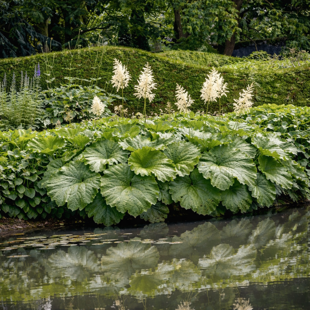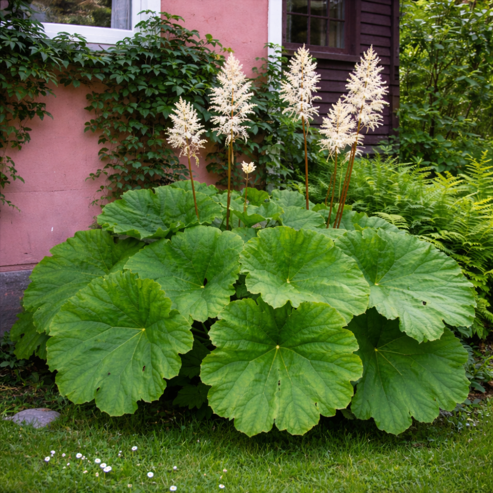 Astilboides tabularis este o plantă perenă impresionantă, apreciată pentru frunzișul său decorativ de dimensiuni mari. Formează frunze rotunde, mari, de culoare verde deschis, asemănătoare unor umbrele, care creează un fundal spectaculos pentru alte plante. Planta dezvoltă tufe mari, de aproximativ 100 cm înălțime și lățime, fiind ideală pentru zonele umbrite ale grădinii.