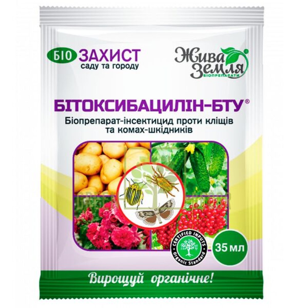 Битоксибациллин-БТУ-р — биопрепарат инсектицид для защиты растений от насекомых-вредителей и клещей.