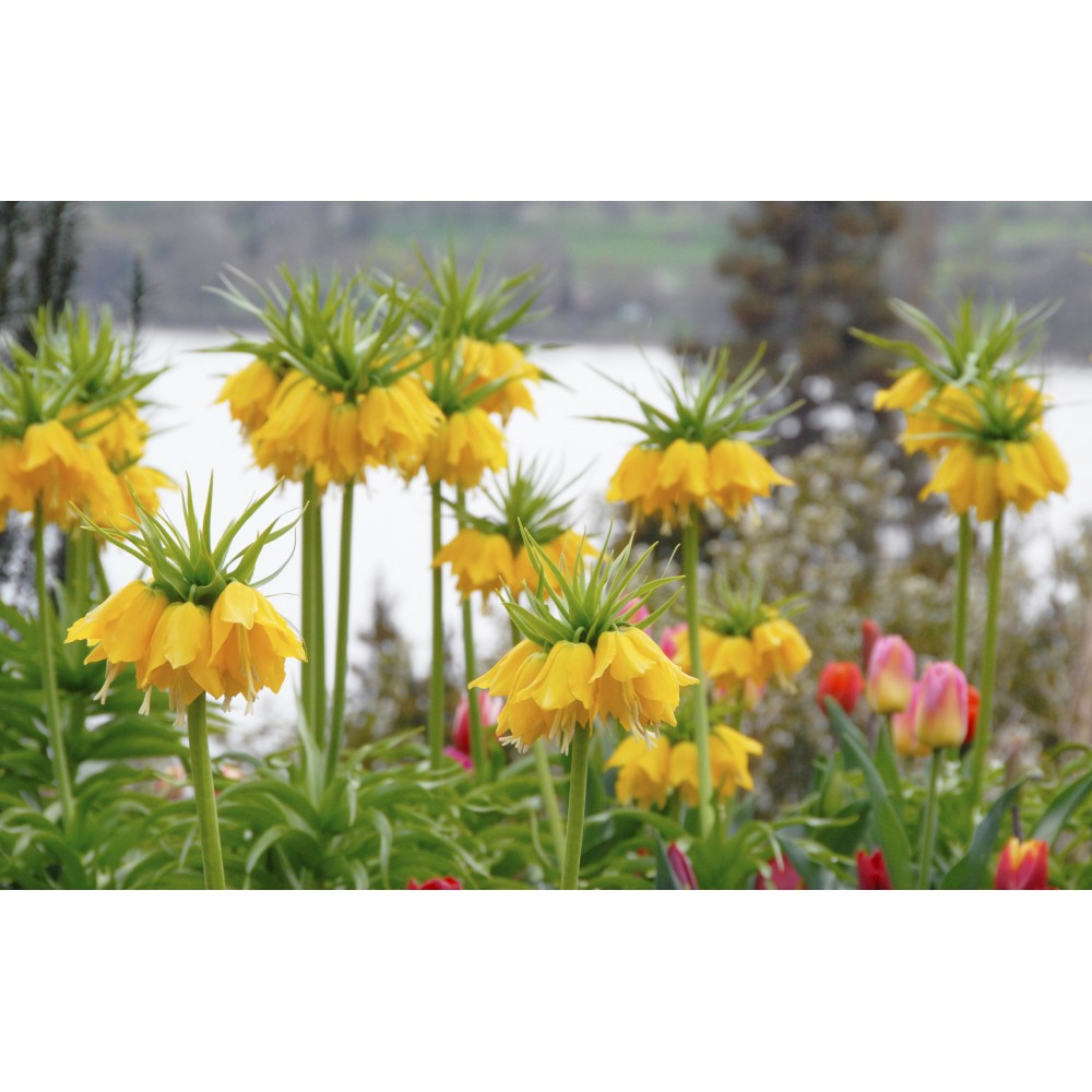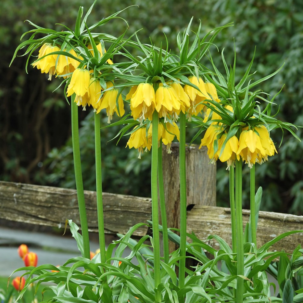 Fritillaria Maxima Lutea (Fritillaria imperialis "Maxima Lutea", coroana imperială "Maxima Lutea"). Florile uriașe însorite vă vor surprinde pe voi și pe vecinii voștri cu frumusețea lor. Apariție Acesta este soiul vechi preferat al tuturor, care produce inflorescențe impresionante de flori. Ele sunt în formă de clopot, "priviți în jos", ca nuanțele unui candelabru. În plus, "capetele" florilor sunt încoronate cu coroane - frunze subțiri îndreptate vertical. Coroana le dă imaginea unei persoane domnitoare. Culoarea florilor este galben transparent, cu dungi violete. Fritilaria imperială sau cocoșul imperial de alun este cea mai maiestuoasă floare dintre florile de primăvară. Este o plantă perenă mare care are un peduncul puternic. Prin urmare, uneori cocoșul de căpșuni seamănă cu un copac mic. Inflorescența este o umbrelă. De obicei este format din 6 flori. Dimensiunea florii are o lungime de până la 5 cm. După înflorire, fritilaria formează păstăi mari de semințe. Semințele care s-au format își pierd rapid germinația (trebuie utilizate imediat în primul an). Becul este rotunjit, ușor aplatizat orizontal. Se compune din 2 - 3 cântare cărnoase topite. Cântarele uscate sunt absente. Becurile au un miros neplăcut, ciudat, neplăcut, care se deosebește de alte plante bulbice. Numai acele becuri înfloresc, a căror dimensiune atinge un diametru de 10 cm.