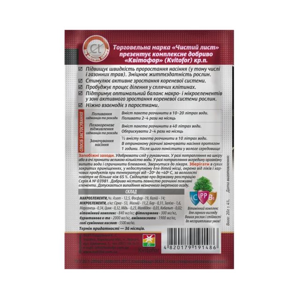 Чистый Лист для укоренения растений содержит необходимый набор питательных веществ: