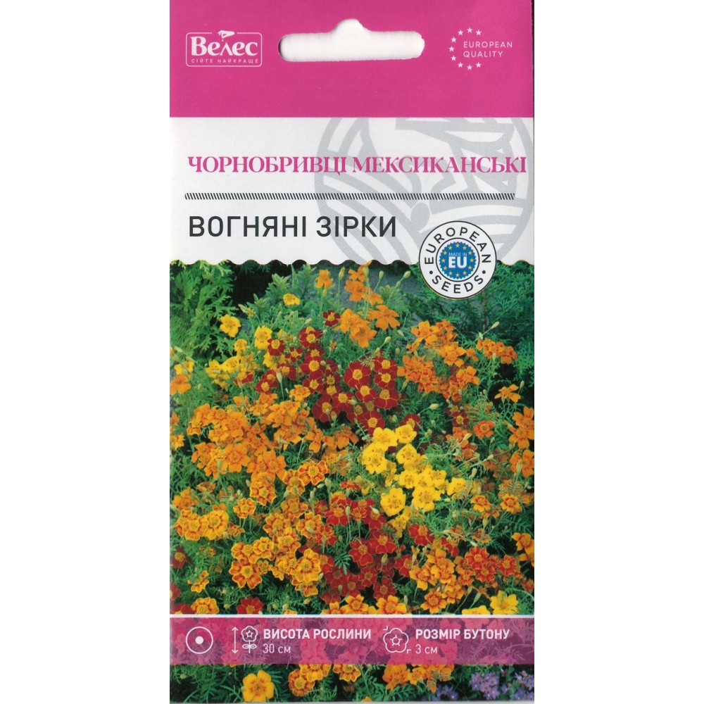 Семена бархатцев мексиканские Огненные звезды 0,5г Однолетнее растение, высотой 20-30см. Кусты раскидистые, с очень разветвленными стеблями, во время цветения похожи на шары. Соцветия многочисленные, диаметром 2-3 см, желтых, оранжевых и двухцветных расцветок. Максимальная декоративность достигается на солнечных участках. Выращивают посевом семян в открытый грунт или через рассаду. Цветение обильное с июня до первых заморозков. Используют для обрамления клумб, бордюров, украшения балконных контейнеров и садовых.