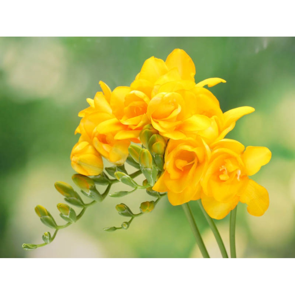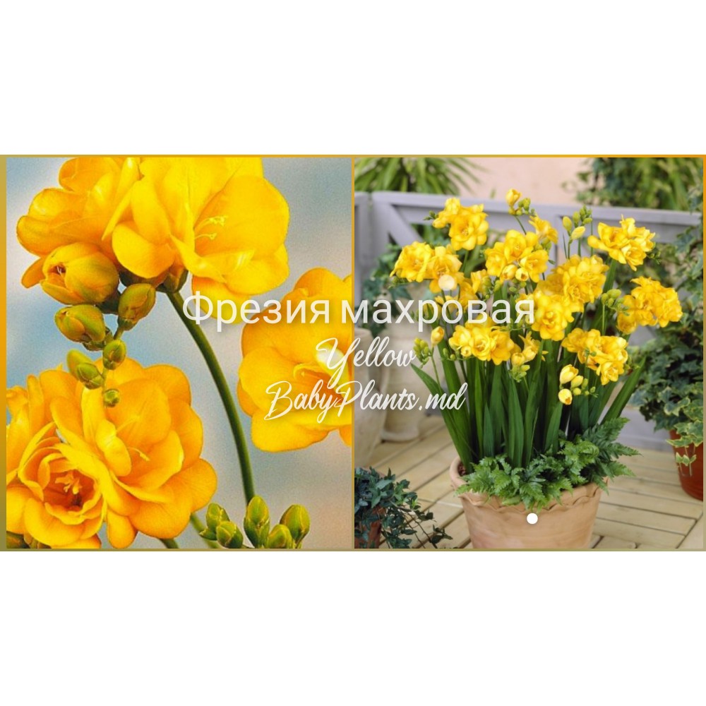 Frezia Dublă Galbenă este un sort originar din Africa de Sud, apreciat pentru florile sale galbene, intense și strălucitoare. Acest sort de frezie adaugă un accent viu și vesel în orice grădină și este adesea folosit pentru realizarea buchetelor parfumate.