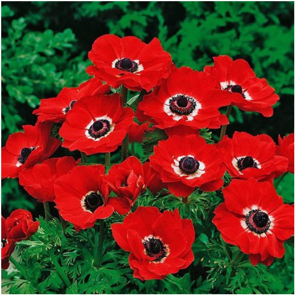 Florile acestei anemone au un diametru de 6–8 cm. Ele sunt de un roșu intens cu un centru închis, ceea ce le face foarte atrăgătoare. Formele lor sunt asemănătoare unor stele deschise sau cupe.