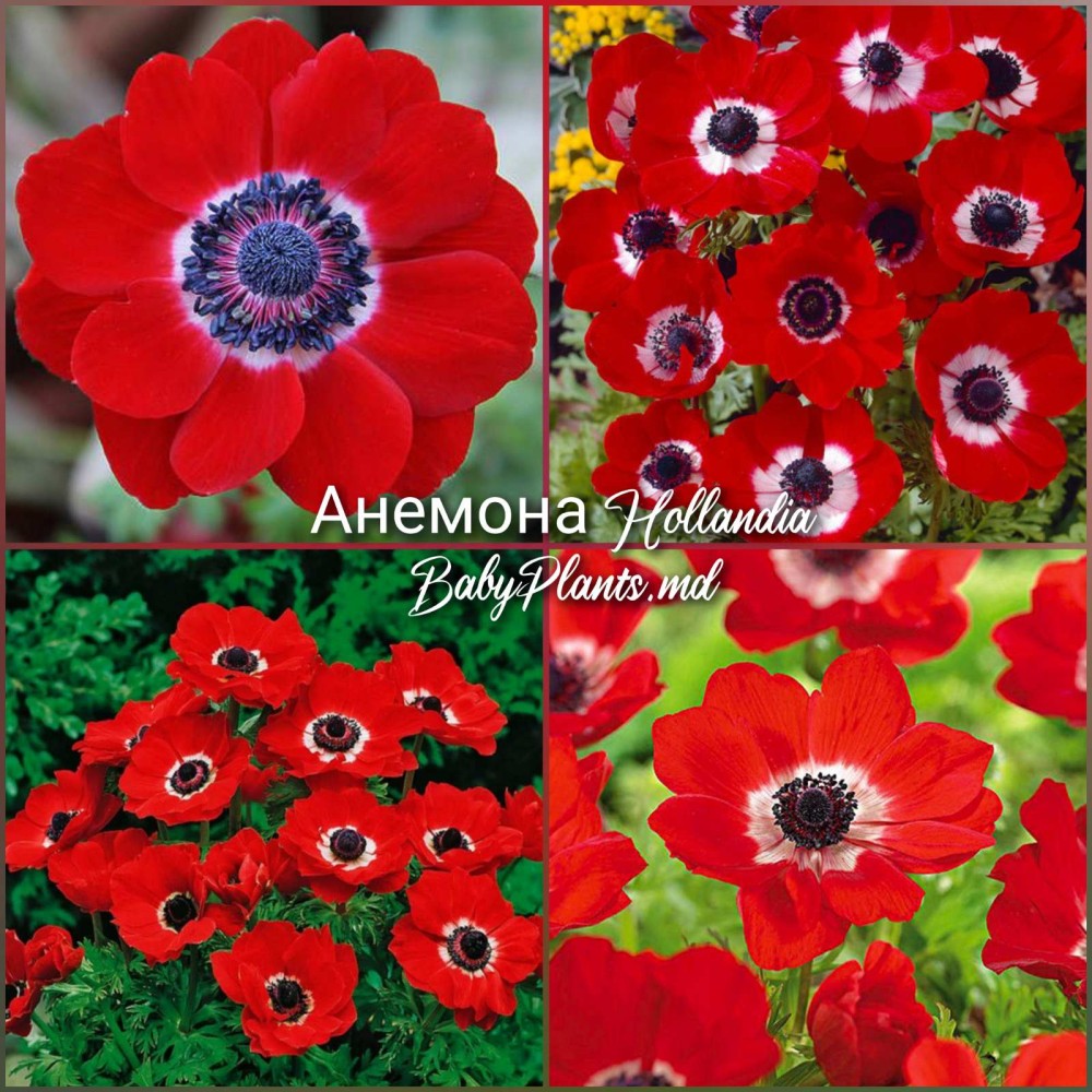 Anemona Hollandia este un hibrid decorativ originar din Țările de Jos, apreciat pentru florile sale strălucitoare și culoarea intensă. Aceasta este o varietate populară în grădinăritul decorativ și este folosită pentru a crea accenturi vii pe grădini și în aranjamente florale.