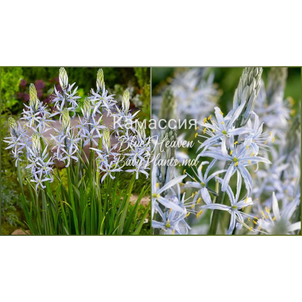 Camassia leichtlinii ‘Caerulea’ — o plantă perenă bulbiformă elegantă, cu flori albastre în formă de stea, grupate în inflorescențe verticale de până la 40 cm lungime. Planta ajunge la 70–100 cm înălțime și se potrivește perfect în straturi de flori, mixborder și grădini cu aspect natural. Nuanțele delicate de albastru aduc grădinii prospețime și armonie.