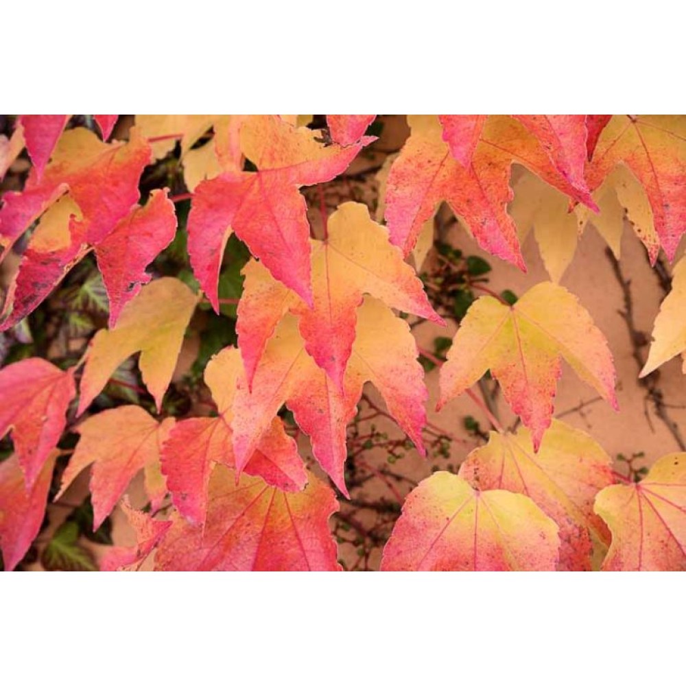 Frunzele sunt mari, cu trei lobi, și au o culoare verde intensă pe timpul verii, iar în toamnă capătă nuanțe roșii și portocalii, creând un efect decorativ deosebit. Acesta este un aspect care face această plantă cu adevărat remarcabilă.