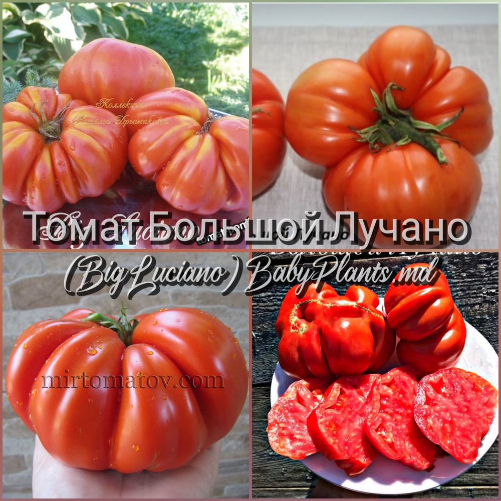 Большой Лучано (Big luciano). Италия. Высокорослый, среднеспелый. Плоды красные, плоскоокруглые со складками, мясистые, сладкие, сочные, весом 300-600г.