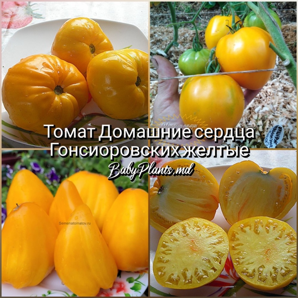 Домашние сердца Гонсиоровских желтые. Индет, до 1,8м, среднеспелый. Плоды желтые, сердцевидные, очень вкусные, с маслянистой сладкой мякотью, весом до 500г. Высокоурожайный сорт.