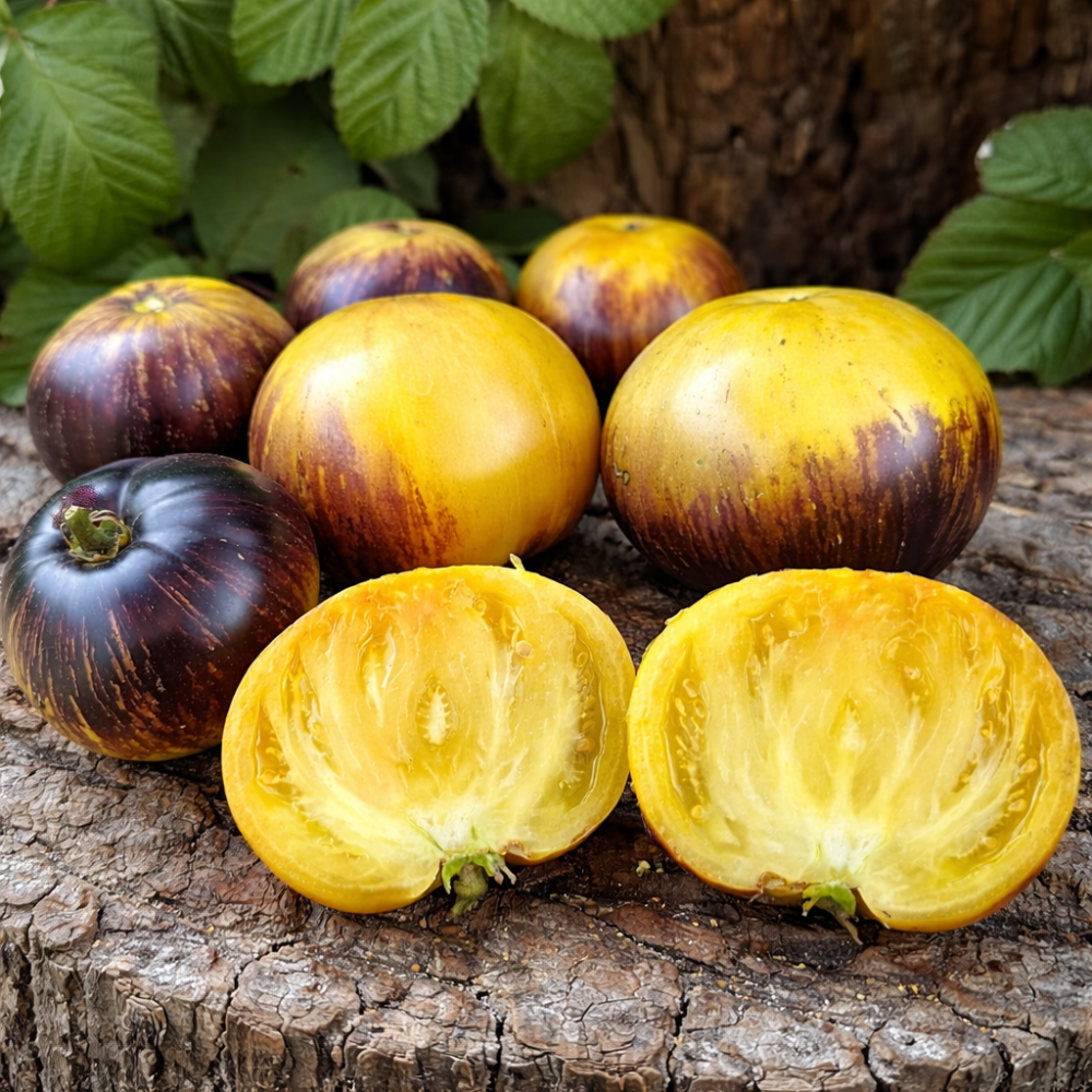 Soi de roșii nedeterminat, înalt, de maturitate mijlociu-timpurie, cu fructe mari și aspect decorativ. Planta este viguroasă, ajunge la aproximativ 180 cm înălțime și necesită susținere și formare. Fructele sunt mari, 200–300 g, turtit-rotunde, ușor costate, dense, cu o culoare frumoasă galben-roz. Pulpa este suculentă, fragedă, cu gust dulce și nuanțe exotice ușor fructate. Soiul este apreciat pentru coloritul deosebit al fructelor, gustul plăcut de desert și rodirea stabilă. Potrivit pentru cultivare în sere și în câmp deschis, ideal pentru consum proaspăt și salate.