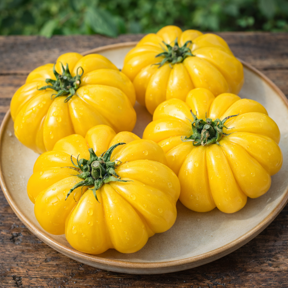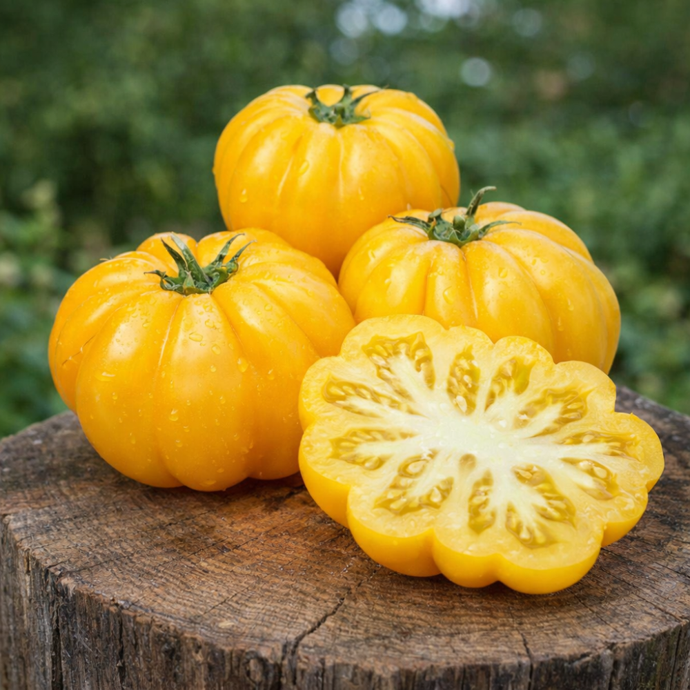Soi de sezon mediu, cu creștere înaltă până la aproximativ 1,4–1,5 m, cu productivitate peste medie și fructificare stabilă. Fructele sunt mari, cu greutatea de 180–310 g, puternic nervurate, de culoare galben-portocalie, cu formă decorativă pronunțată. Interiorul fructului prezintă cavitate, iar gelul cu semințe este concentrat în partea centrală, ceea ce face soiul foarte potrivit pentru utilizări culinare speciale. Pulpa este densă, moderat suculentă, cu gust blând și echilibrat, fără aciditate accentuată. Datorită structurii sale, este ideal pentru umplere, coacere, feliere decorativă și preparate calde. Soiul poate fi cultivat cu succes în seră și în câmp deschis pe terenuri bine luminate, preferă soluri fertile și afânate, cu fertilizare regulată. Se remarcă prin aspect decorativ ridicat și valoare colecționistică.
