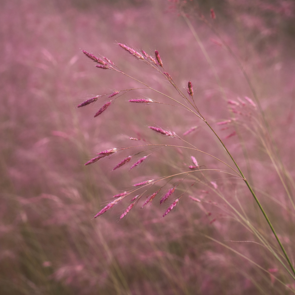 Eragrostis spectabilis este o iarbă decorativă cu inflorescențe fine, aerate, de culoare roz-purpurie, care creează un efect delicat de nor deasupra plantei. În perioada de înflorire, spicele subțiri se mișcă ușor în vânt, oferind grădinii dinamism și eleganță. Frunzișul îngust rămâne decorativ pe tot parcursul sezonului.
