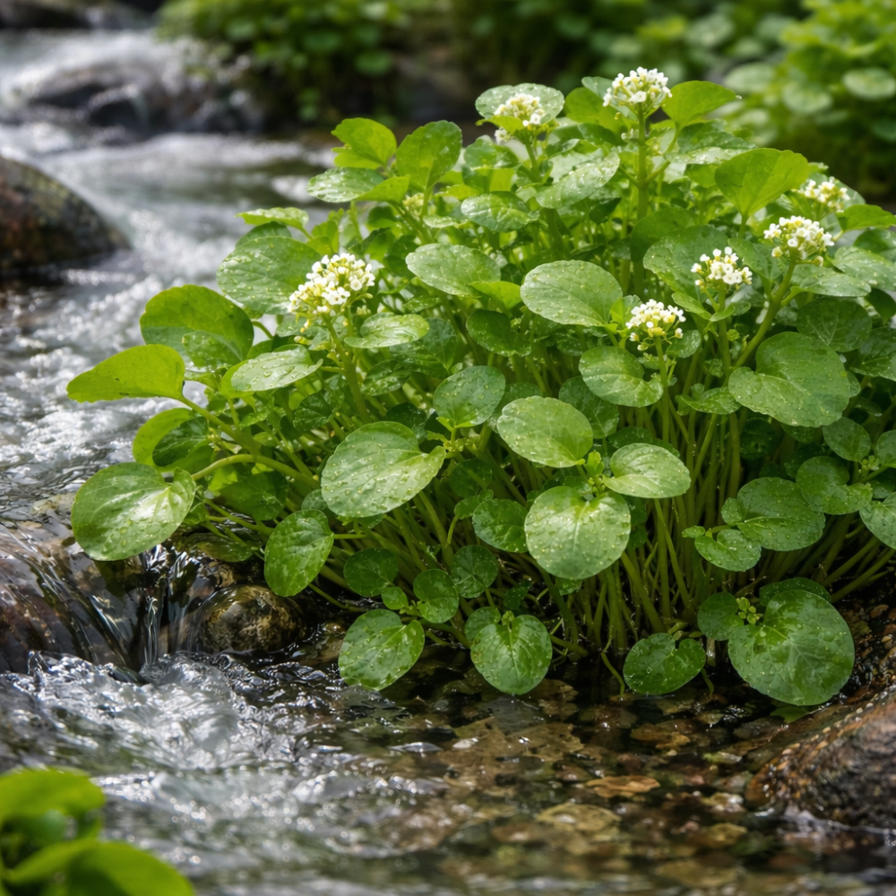 Nasturtium officinale este o plantă perenă iubitoare de umiditate din familia Brassicaceae. Este una dintre cele mai cunoscute plante acvatice comestibile, utilizată frecvent atât în bucătărie, cât și în medicina tradițională. Planta formează lăstari verzi suculenți cu frunze fragede și se răspândește ușor pe solurile umede sau pe marginile apelor.