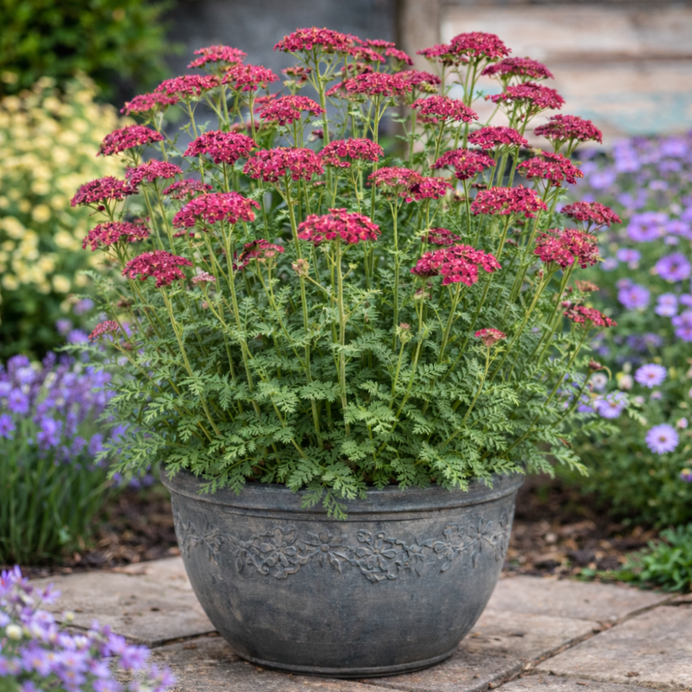 Achillea millefolium „Cassis” este un soi decorativ peren cu inflorescențe de culoare roșu-cireș intens. Planta formează umbrele dense de flori care contrastează frumos cu frunzișul fin și decorativ. Datorită culorii intense și perioadei lungi de înflorire, acest soi este frecvent utilizat în grădini naturale, borduri mixte și amenajări peisagistice cu întreținere redusă.