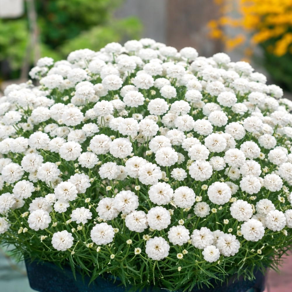 Planta formează tufe cu înălțimea de aproximativ 40–50 cm. Florile sunt albe pure, duble, grupate în inflorescențe bogate. Înflorirea începe la sfârșitul primăverii și continuă o perioadă lungă — din mai până în septembrie. Planta poate înflori chiar din primul an după semănare.