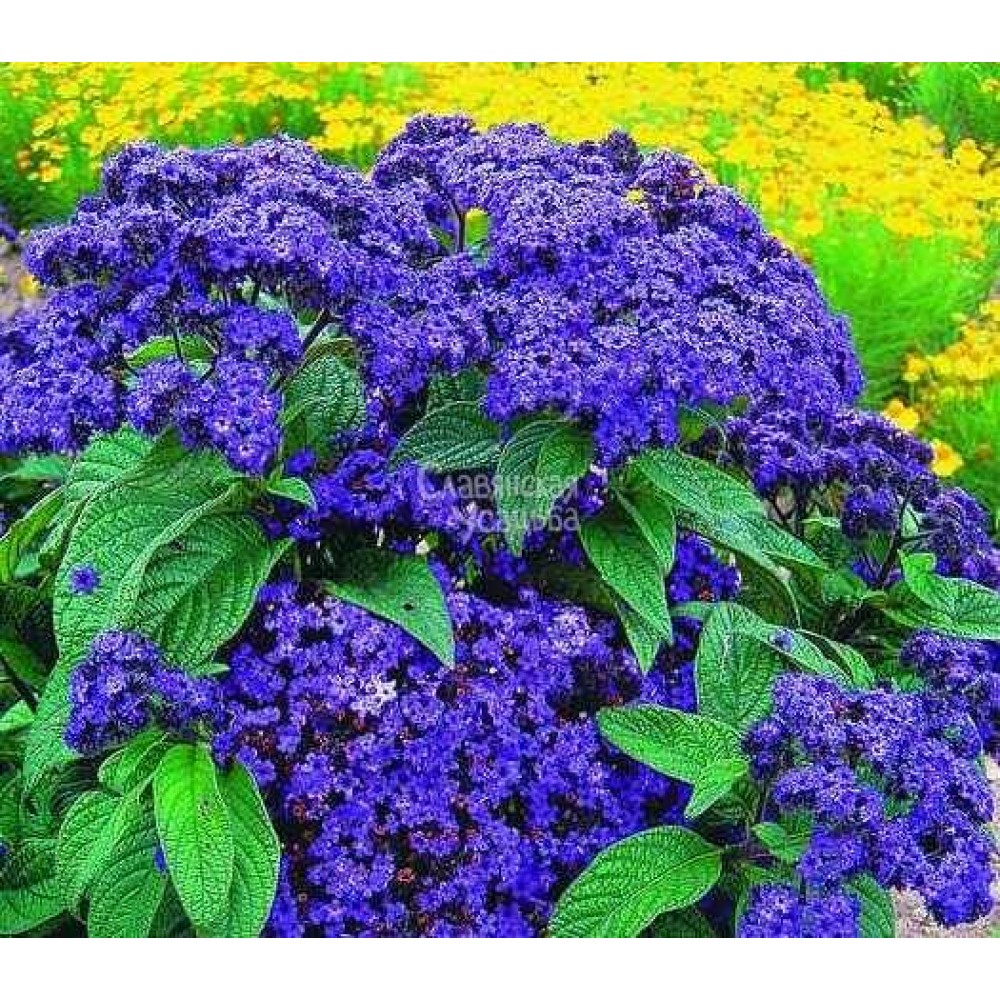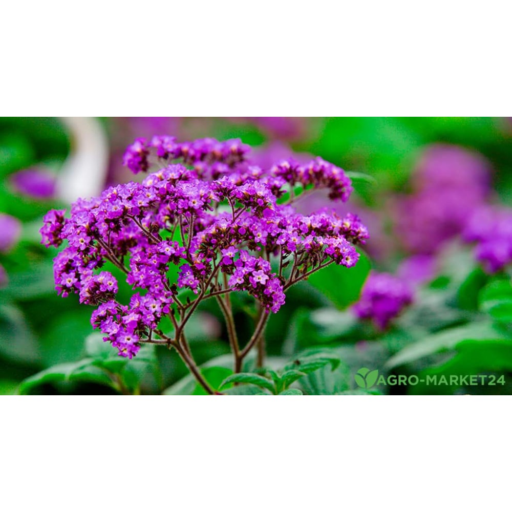 Heliotrop Marine Blue este o plantă ornamentală aromatică, cu inflorescențe dense de culoare albastru închis și un parfum dulce, cu note de vanilie și miere. Tufele compacte, cu frunziș verde-închis, au un aspect ordonat și decorativ, fiind ideale pentru accente de culoare în ronduri și aranjamente în containere. Planta atinge o înălțime de 30–40 cm și este potrivită pentru straturi florale, borduri, jardiniere de balcon și ghivece.
