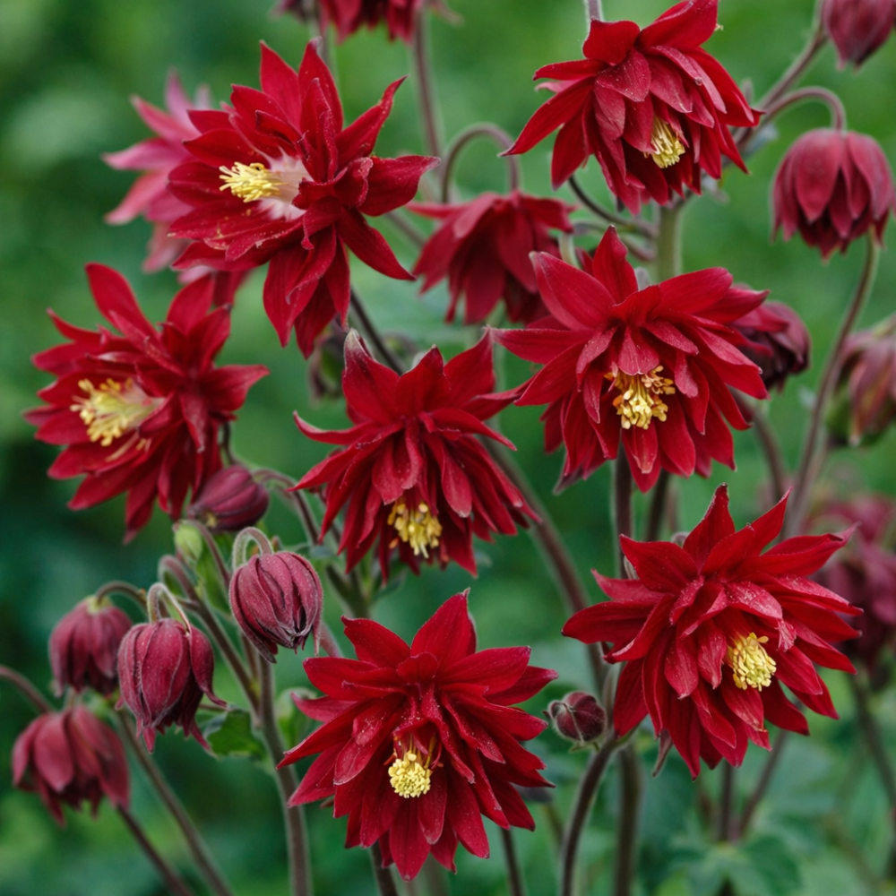 Aquilegia vulgaris Bordeaux Barlow este o plantă perenă decorativă cu flori duble spectaculoase de culoare rubiniu închis, cu nuanțe de burgundy. Florile sunt dense, rotunjite și fără pinteni, dispuse pe tulpini erecte, oferind un aspect elegant și intens decorativ. Planta atinge aproximativ 80 cm înălțime și este potrivită pentru straturile medii și înalte ale grădinii, precum și pentru compoziții contrastante.
