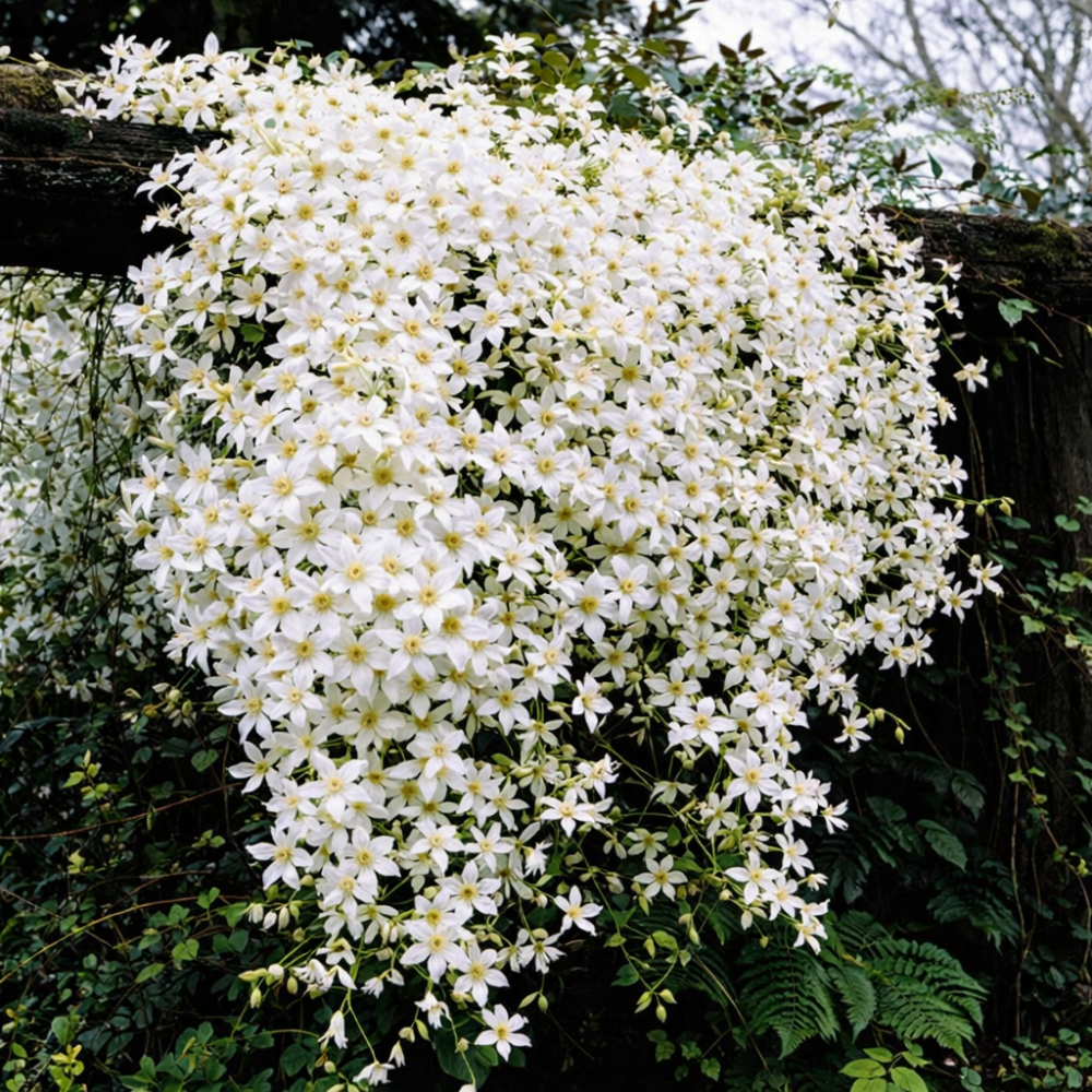 Clematis paniculata este o plantă perenă decorativă, cățărătoare, cu creștere viguroasă și înflorire abundentă. Formează lăstari de până la 200 cm, potriviți pentru acoperirea suporturilor și decorarea verticală. În perioada de înflorire, din august până în octombrie, planta este acoperită cu numeroase flori mici, albe, grupate în inflorescențe bogate, creând un efect aerat și luminos.