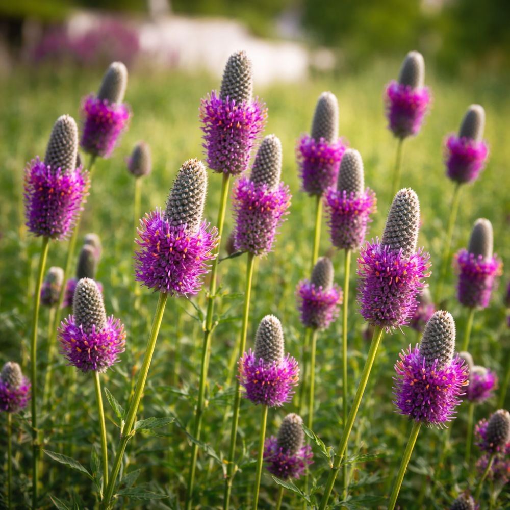 Dalea purpurea este o plantă perenă decorativă, apreciată pentru inflorescențele sale elegante și textura aerată. Formează tufe de aproximativ 60 cm înălțime, cu tije subțiri și frunziș fin. În perioada de înflorire apar inflorescențe cilindrice, de până la 6 cm lungime, alcătuite din flori mici de culoare roz-purpuriu.