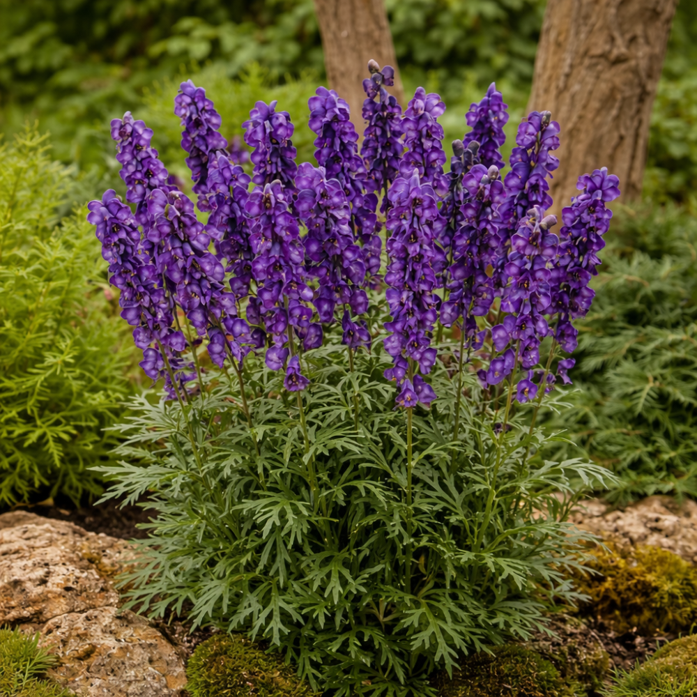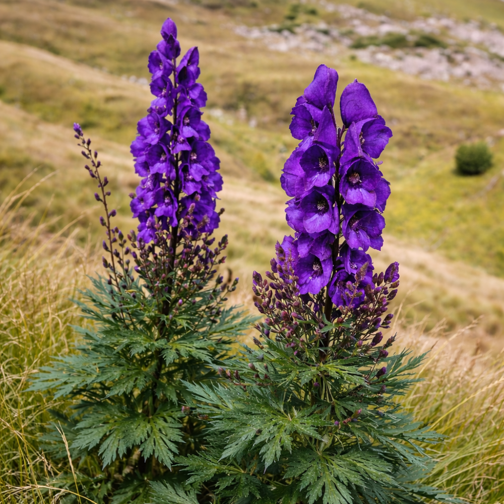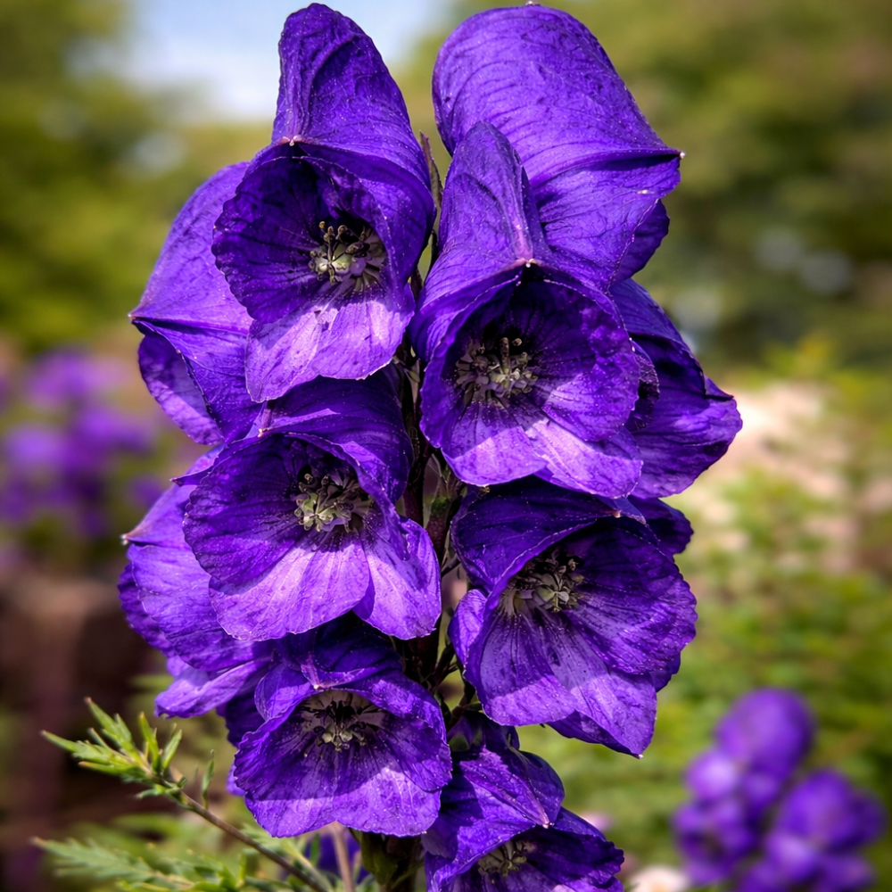 Aconitum napellus este o plantă perenă ornamentală din familia Ranunculaceae, apreciată pentru inflorescențele sale înalte de culoare albastru intens și pentru frunzișul decorativ. Datorită aspectului său elegant, planta este frecvent utilizată în borduri, grădini naturale și aranjamente florale.