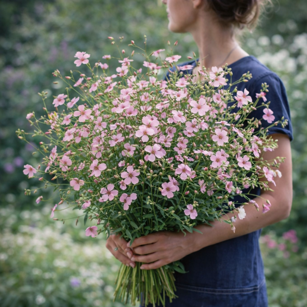 Vaccaria hispanica Rosabella este o plantă ornamentală delicată, cu flori roz-purpuriu, dispuse în inflorescențe aerate care oferă un aspect natural și romantic grădinilor. Florile sunt mici și elegante, susținute de tulpini subțiri și rezistente, fiind ideale pentru flori tăiate. Planta atinge o înălțime de 60–80 cm și este utilizată în ronduri, grădini naturale și aranjamente floristice. Este apreciată în special ca plantă de umplere pentru buchete și pentru compoziții uscate.