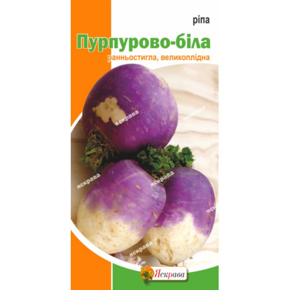 пурпурно-белая — описание сорта: созревает спустя 40-45 дней после посадки; плоды вытянутой формы, сверху сиреневые, снизу молочно-белые, массой 70-130 г; мякоть белая, сочная, без грубых волокон, слабоострая; урожайность 3-4 кг с 1 м. кв; устойчивость к стрелкованию, теневыносливость. Чем полезна репа? Повышенное содержание витаминов С и группы В, клетчатка, вода, пектины и пищевые волокна делают овощ ценным диетическим продуктом. Врачи рекомендуют употреблять корнеплод при диабете, ожирении, атеросклерозе. Вырастить такой чудо-корешок просто: он неприхотлив, отлично переносит пониженные температуры, отличается устойчивостью к большинству заболеваний. |