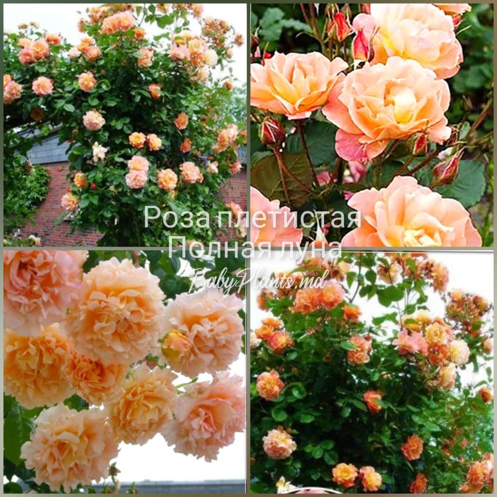 Персиковая роза с малиновыми прожилками Full Moon или Полная луна быстро украсит любой забор, арку, туннель или беседку в саду или розарии. Вьющийся куст вырастает до 300 см в высоту, покрываясь цветами полностью с июня на 6-8 недель и второй волной в августе до первых заморозков.